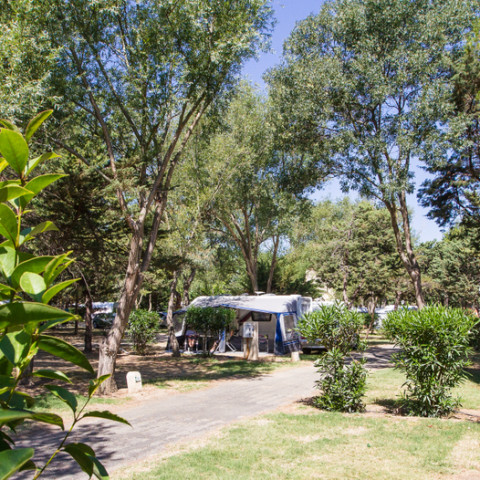 In einer bewaldeten Anlage, in der sich eine Vielzahl typisch mediterraner Arten vermischen, wurden Ihre Stellplätze für Wohnmobile, Wohnwagen und Zelte mit größter Sorgfalt vorbereitet. Unter Pinien oder Weiden, Pappeln oder Phoenixpalmen liegen unsere grasbewachsenen Stellplätze, die meist durch Hecken aus Eleagnus, Pittosporum oder anderen Oleandern oder durch Bäume begrenzt sind.
