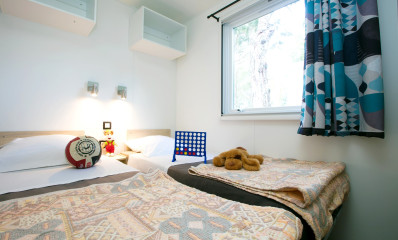 Mit einer Fläche von 28,5 m² verfügt das Sunêlia PRESTIGE 4 Personen über 3 Schlafzimmer und ist für unsere großen Familien geeignet, in denen jeder seinen eigenen Platz finden wird. Eine Doppelterrasse bietet einen Essbereich und Liegestühle zum Entspannen. Tiere werden gemäß den allgemeinen Verkaufsbedingungen akzeptiert.