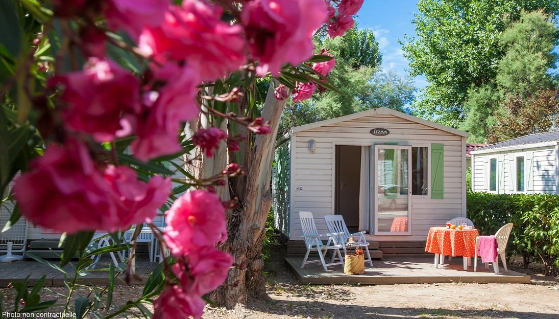This charming little 16 m² bungalow, with its small terrace and garden furniture for 2, is perfect for a couple's holiday. It doesn't pretend to be much, but it's simple and practical! Pets allowed according to our conditions of sale. Not air-conditioned. No TV.