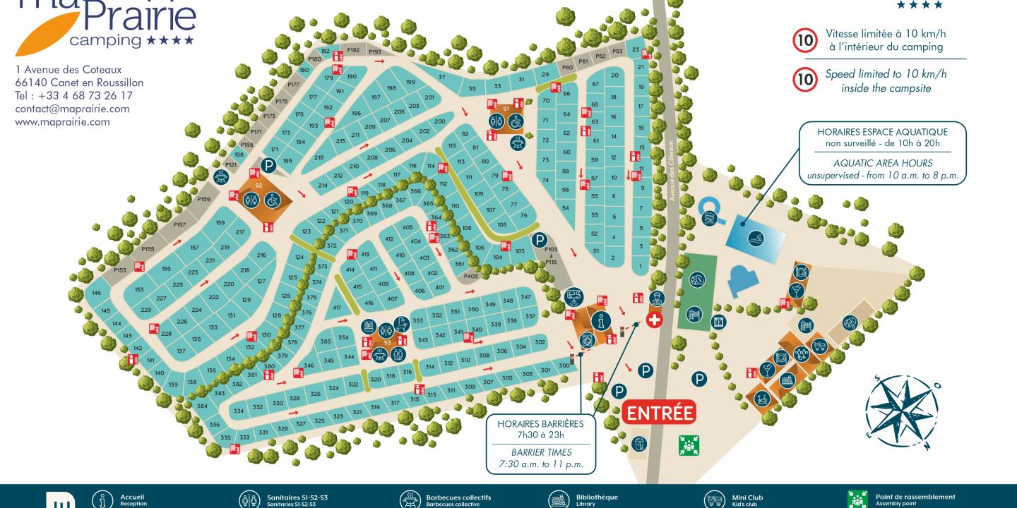 Discover and download the map of our 4-star campsite in Canet-en-Roussillon