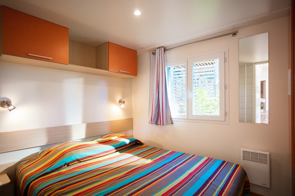 Con sus 32 m², este alojamiento ofrece amplios espacios pensados para la comodidad de todos. Las tres habitaciones separadas permiten que cada uno encuentre su espacio, mientras que la sala de estar, luminosa y agradable, se convierte naturalmente en el corazón de la casa móvil, propicia para compartir momentos desde la mañana hasta las tardes de verano.