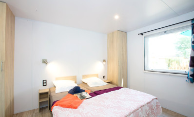El alquiler de SUNÊLIA Confort PMR le ofrece libre acceso a nuestra zona acuática adaptada a personas con movilidad reducida y equipada con piscinas climatizadas y toboganes acuáticos, así como a todos los servicios de nuestro camping: recepción, piscinas, bar, restaurante, aseos, gimnasio...