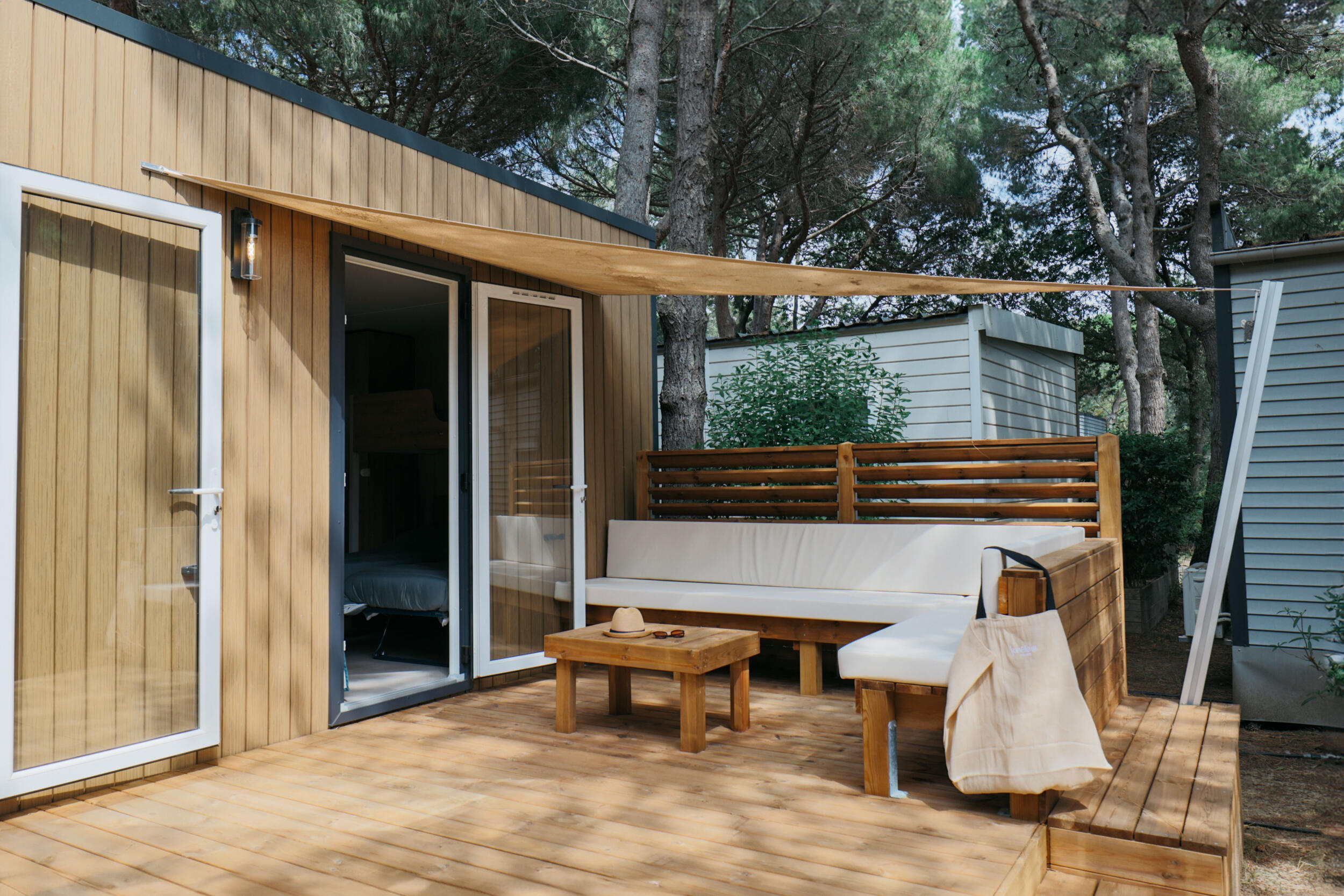 (Maximum capacity of 5 people, including 4 adults) The Sunêlia Luxe Genêt is one of our new features for 2024. This highly comfortable 2-bedroom, 2-bathroom model will appeal to families with its 2 true suites, each with its own shower room and separate toilet, and its warm, all-wood furnishings. It also boasts an open-plan kitchen with plenty of natural light thanks to its horizontal bay window! Pets not allowed.