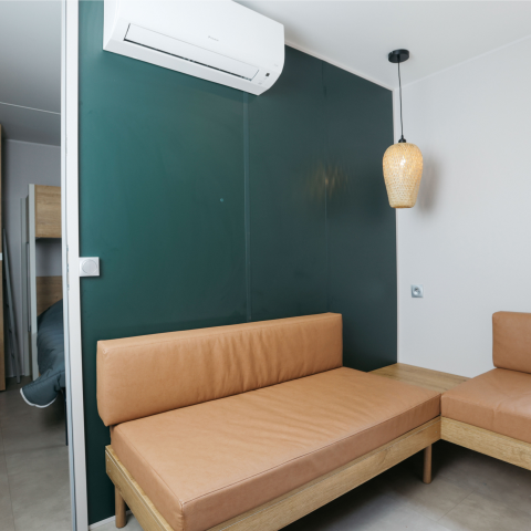 Chaque emplacement dispose de son propre sanitaire privatif, pour plus d’intimité et de sérénité tout au long du séjour. Un petit réfrigérateur est également à votre disposition, idéal pour garder boissons fraîches et essentiels à portée de main.