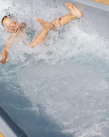 Les adolescents (ou les parents qui ont envie de retomber en enfance) apprécieront le toboggan aquatique et son pentagliss à trois pistes. Ces trois couloirs à bosses permettent de se lancer à toute vitesse à plusieurs, côte à côte. Fous rires garantis en famille !