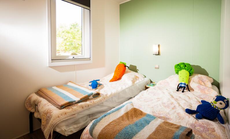 Idéal pour 4 personnes, le Sunêlia Prestige Olivier convient aussi bien à une famille avec deux enfants qu’à un couple d’amis souhaitant partager un séjour convivial au Camping Ma Prairie.