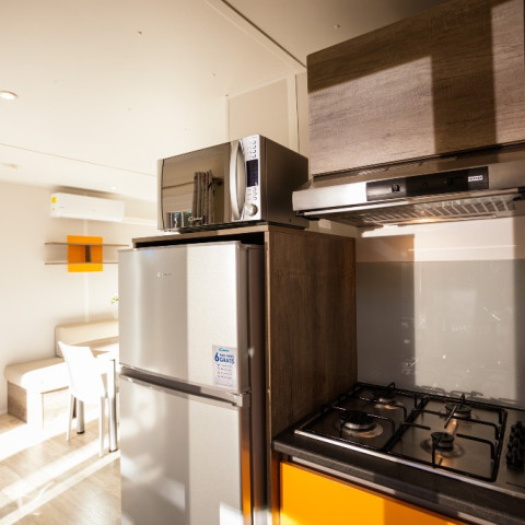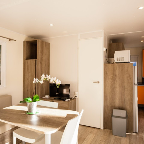 Met zijn lichte ruimte, gezellige open keuken en knusse slaapkamer biedt de Sunêlia Prestige Oranger een intieme en warme sfeer waar u zich meteen thuis voelt. Het uitnodigende terras is de perfecte plek om te genieten van een ontbijt in de zon, een aperitief aan het eind van de dag of gewoon een moment van ontspanning met z'n tweeën.