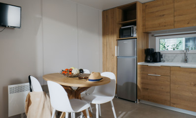 (Maximale capaciteit voor 5 personen, inclusief 4 volwassenen) De Sunêlia Luxe Genêt is een van onze nieuwigheden voor 2024. Dit zeer comfortabele model met 2 slaapkamers en 2 badkamers zal gezinnen aanspreken met zijn 2 echte suites, elk met een eigen doucheruimte en apart toilet, en zijn warme, volledig houten inrichting. Het heeft ook een open keuken met veel natuurlijk licht dankzij de horizontale erker! Huisdieren niet toegestaan.